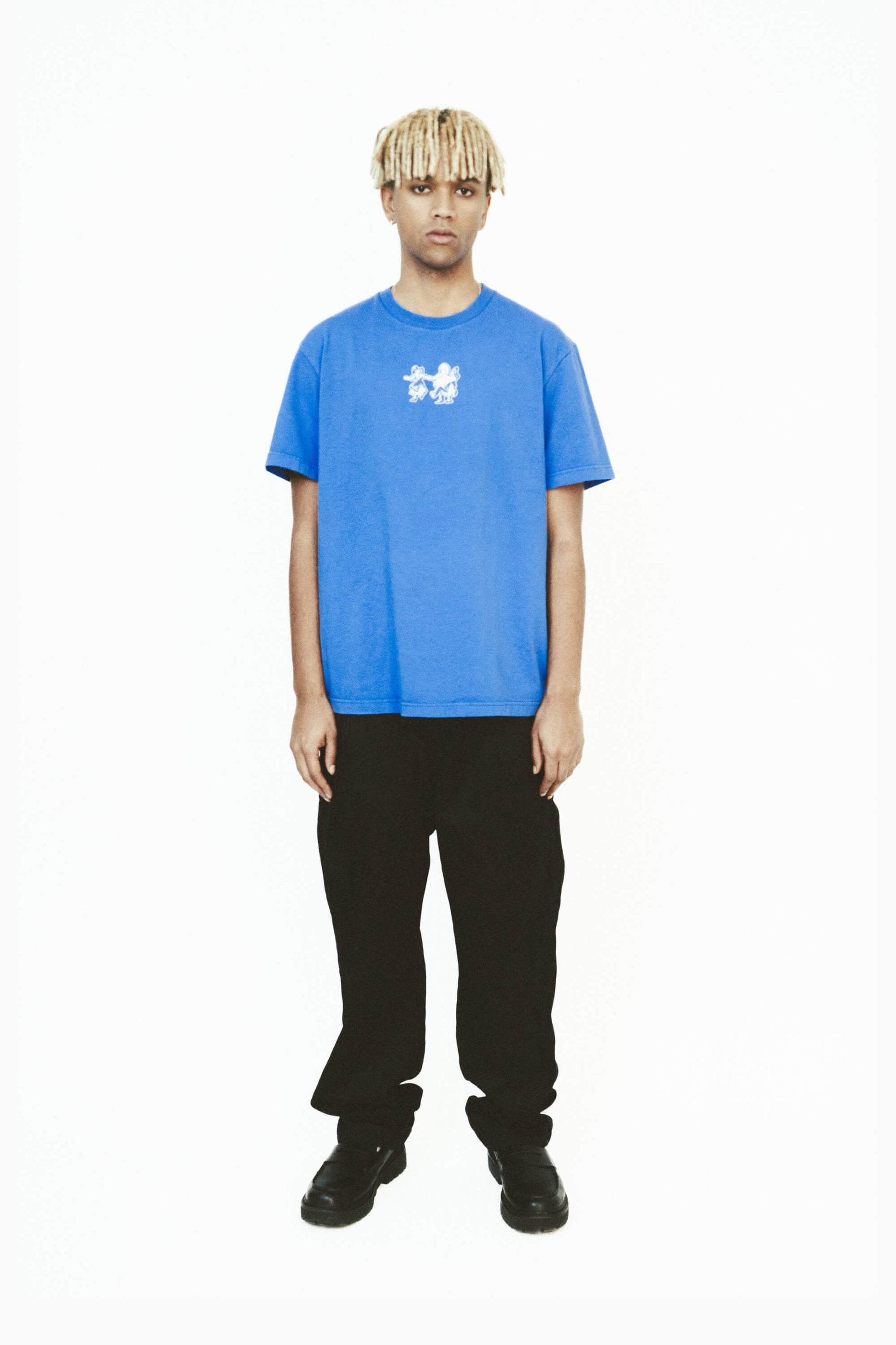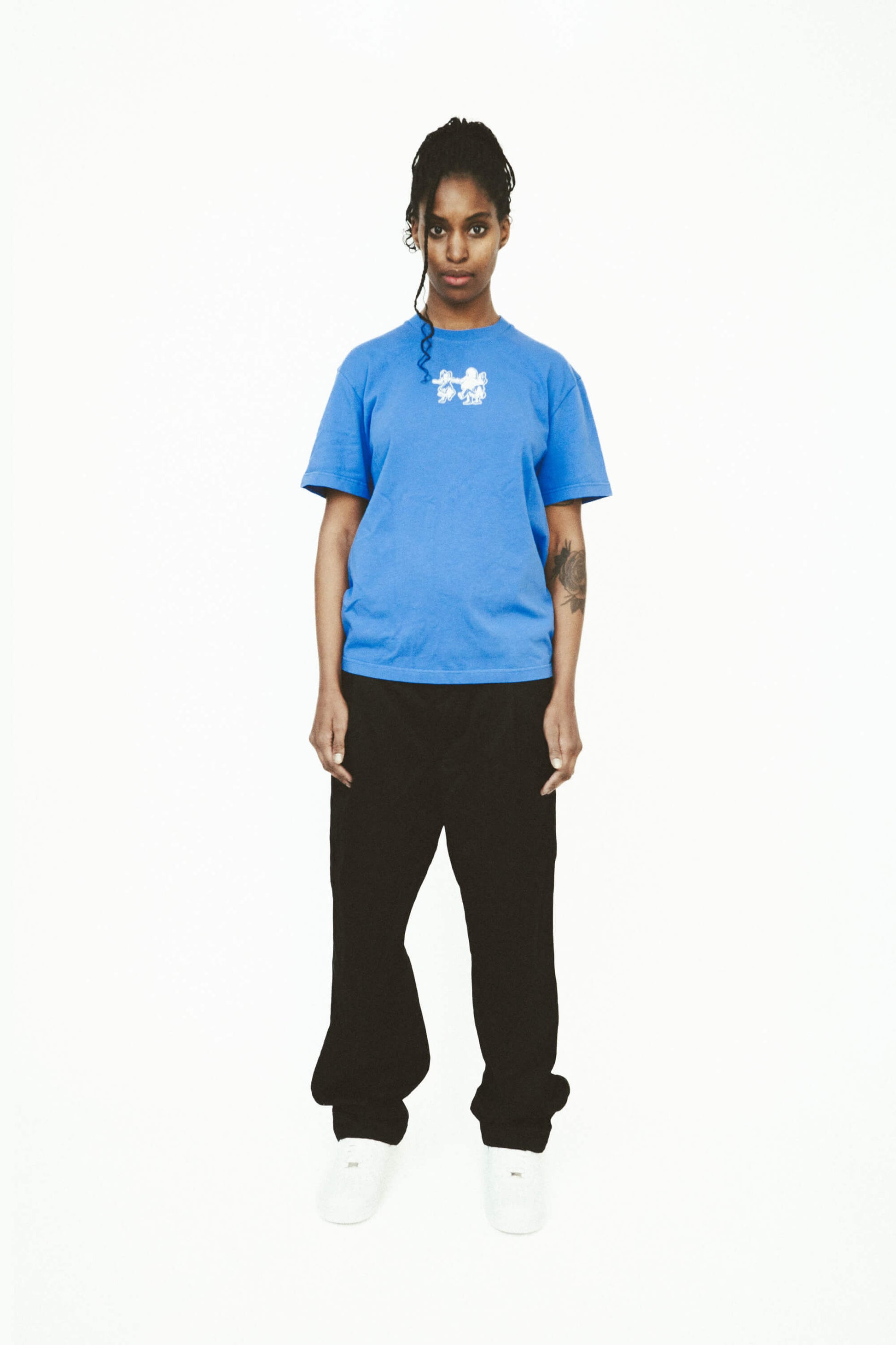 Crafted from 270gsm cotton, this heavyweight royal blue tee features a double-sided silk-screen print. The front showcases the Toile De Jour logo, while the back is printed with the collection name, brand, and mantra in a traditional Alsatian font.