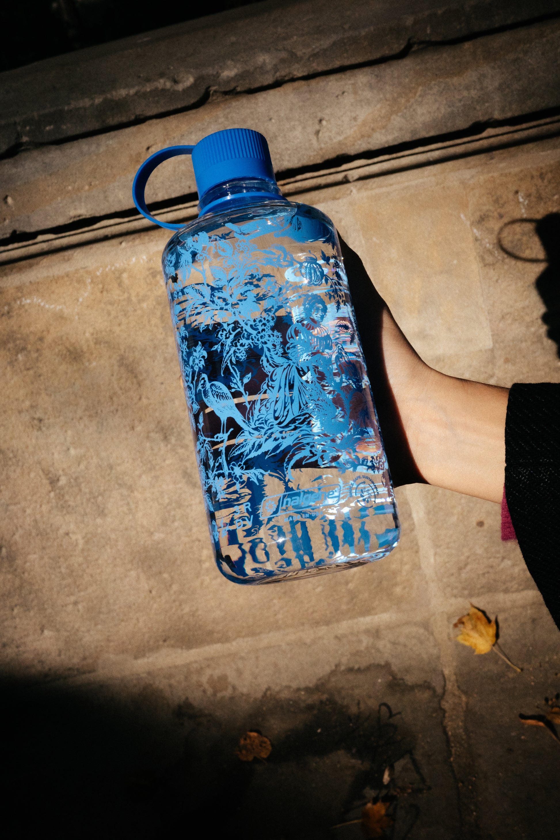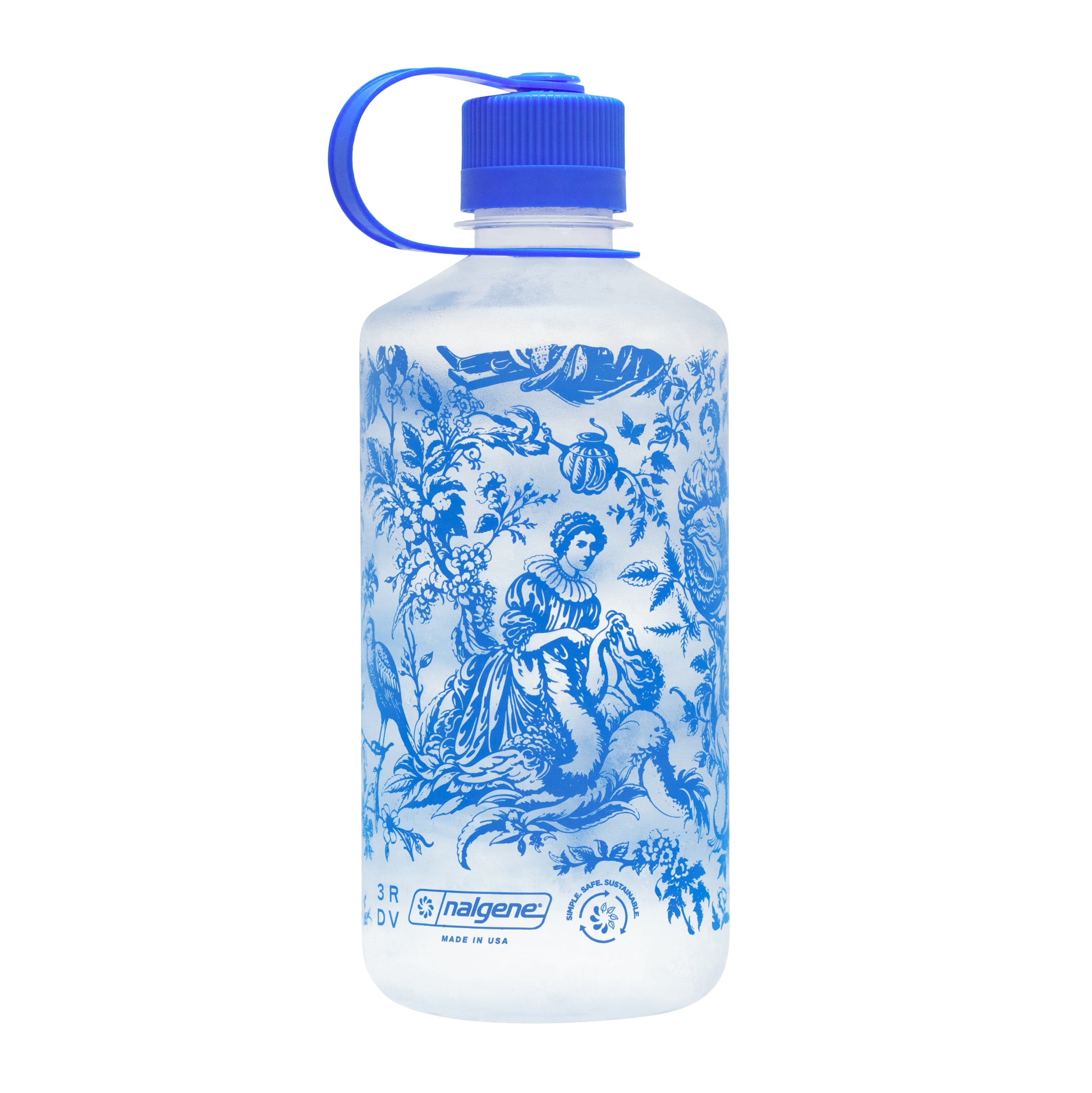 The 1 litre Nalgene narrow-mouth bottle features a unique Toile-De-Jouy print inspired by the 18th-century work of Christophe-Philippe Oberkampf. The intricate detailing brings the historic motif to life, imbuing everyday functionality with a sense of cultural heritage. Perfect for daily use or outdoor adventures.